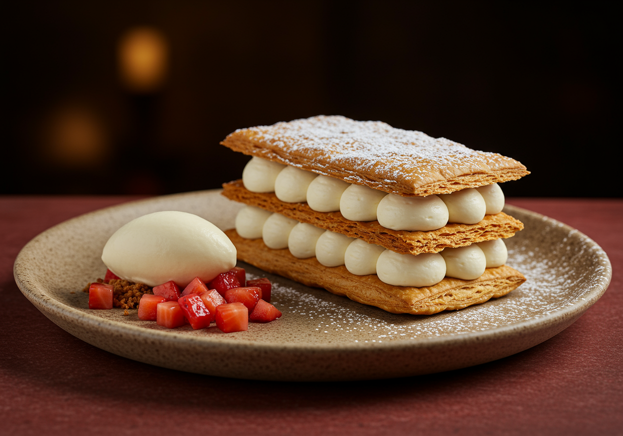 For dessert, try the pistachio Paris-Brest dessert, making it a must-try for those with a sweet tooth.